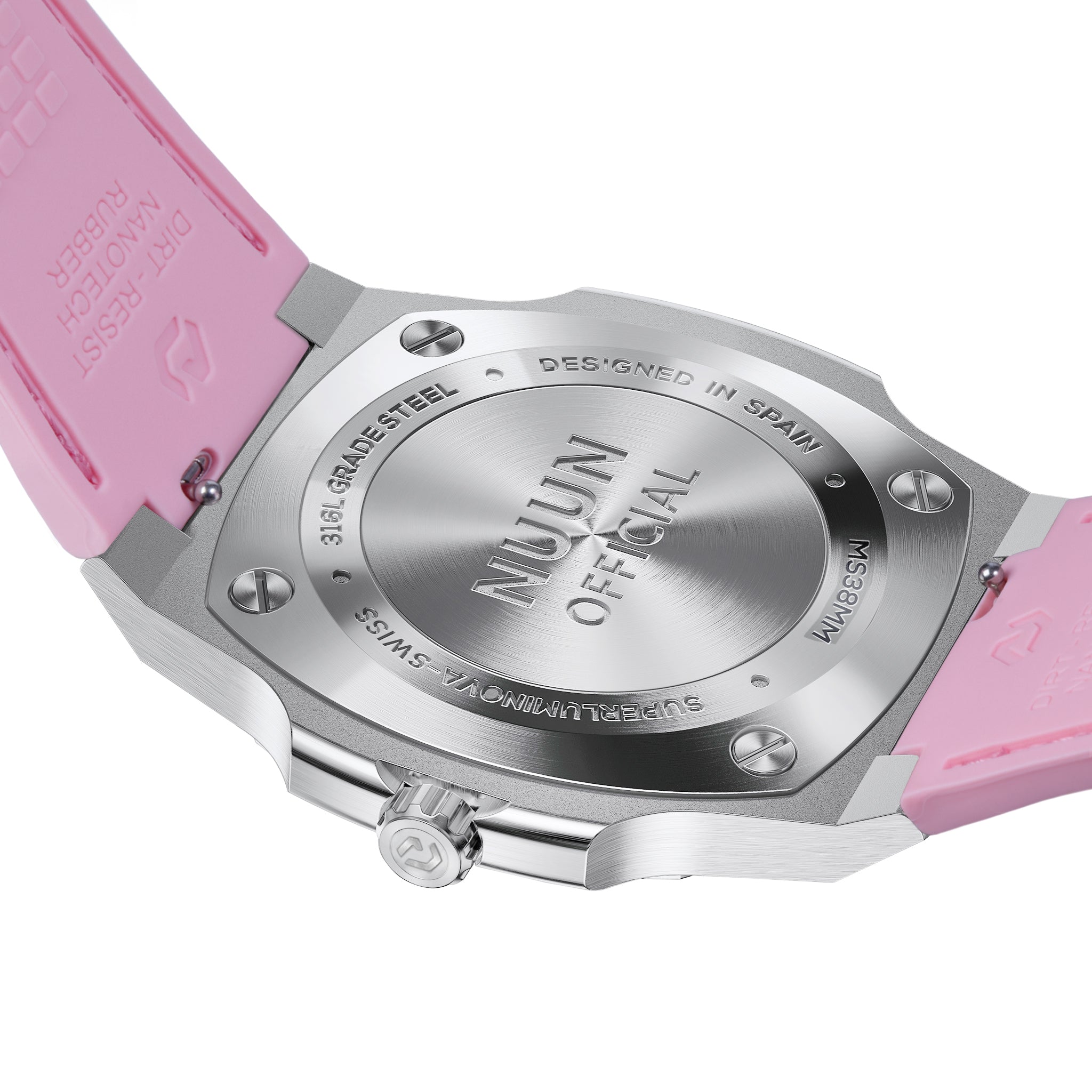 - Straps: Comes with two interchangeable straps – a Nanotech Dirt Resist Pink Rubber for everyday elegance and a 316L Stainless Steel Bracelet for timeless sophistication, both equipped with a quick-release mechanism for effortless style transitions.