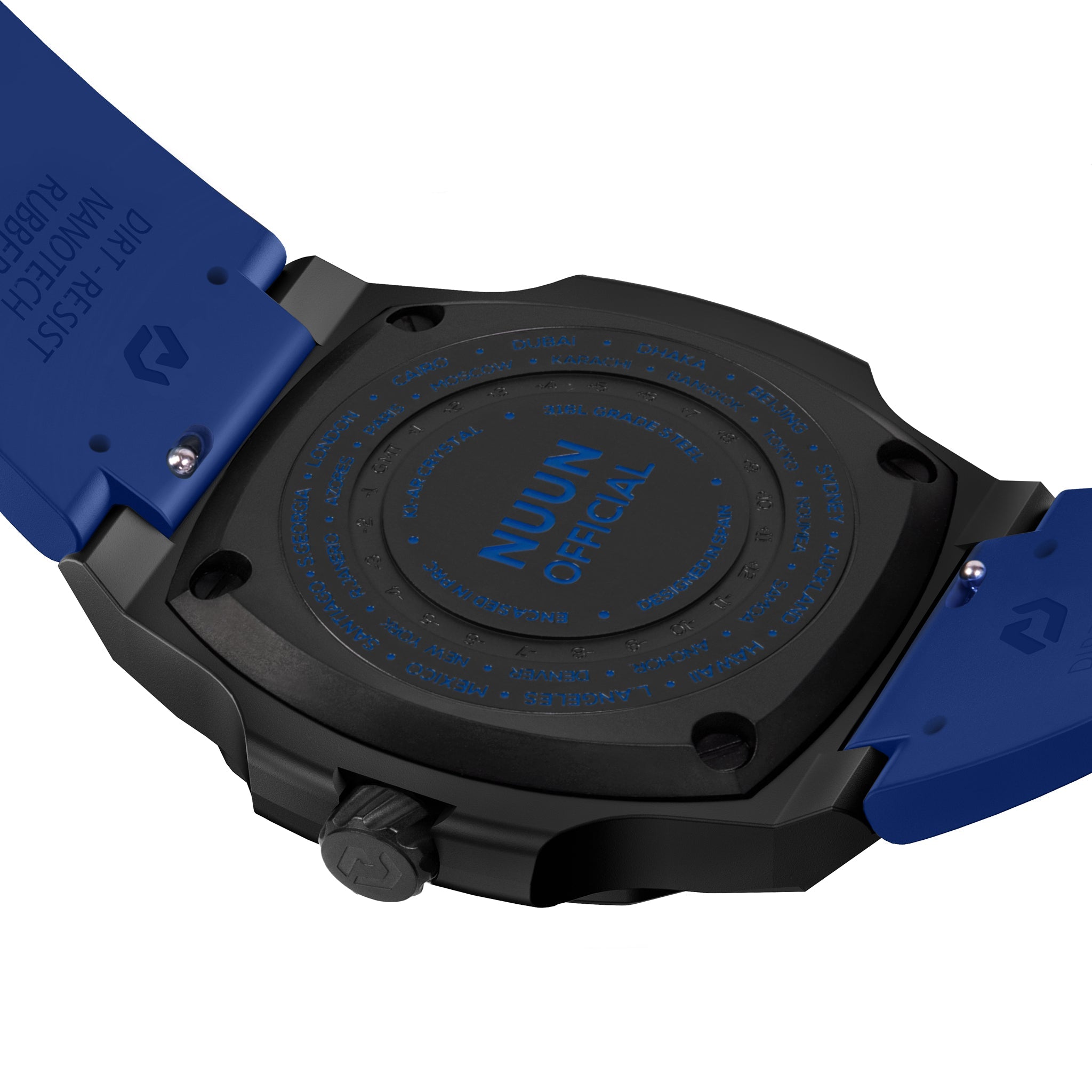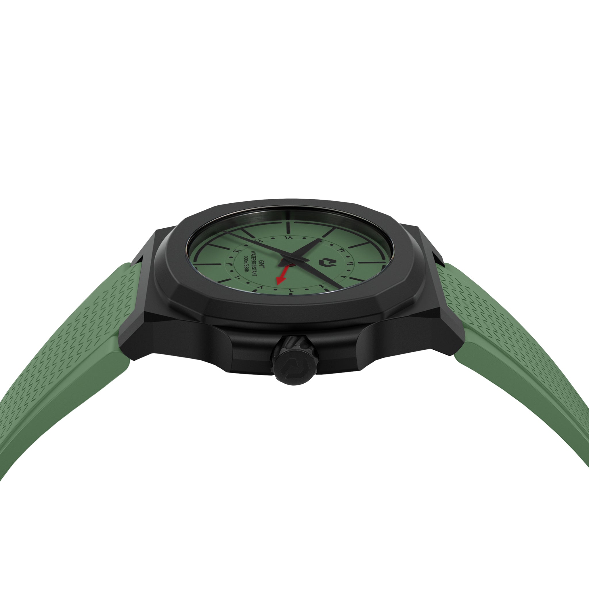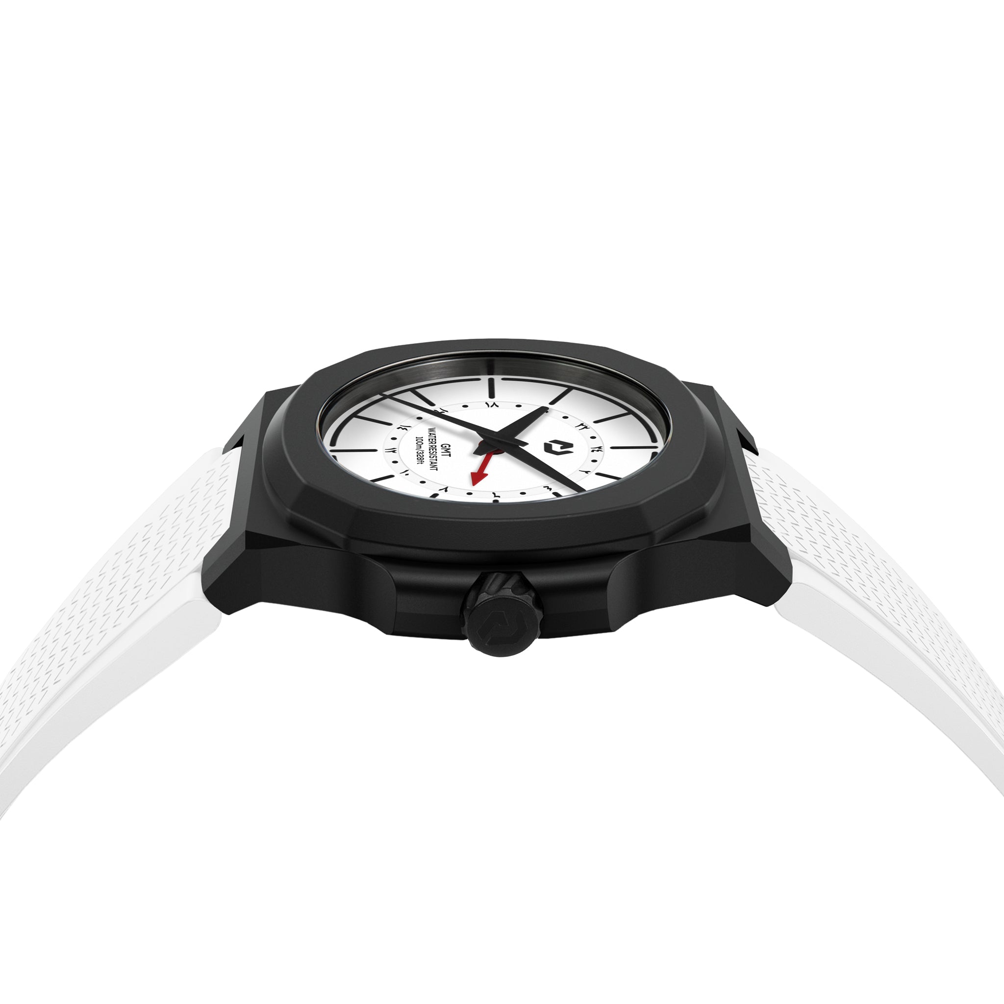 Our watches are encased in Carbon X Tech, a robust yet lightweight material that promises durability and comfort. The dimensions, an elegant 40.5mm x 47mm, sit perfectly on your wrist, designed for both action and sophistication.