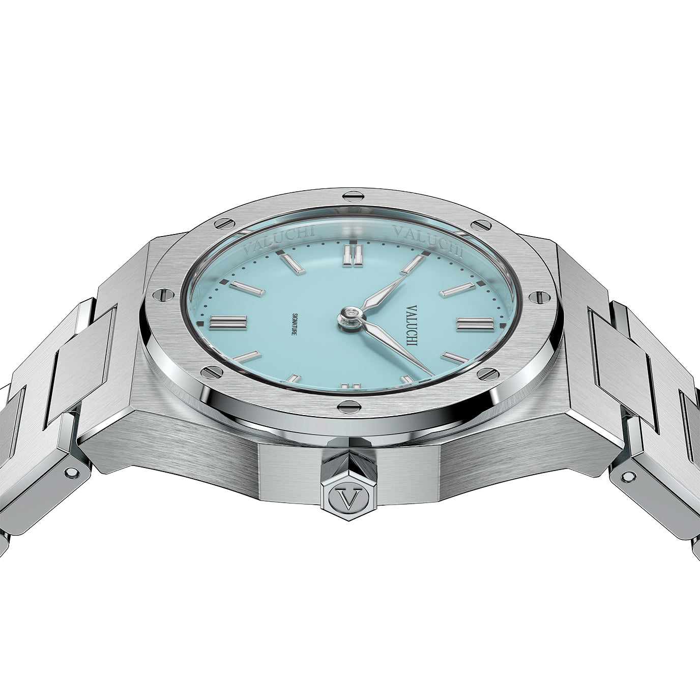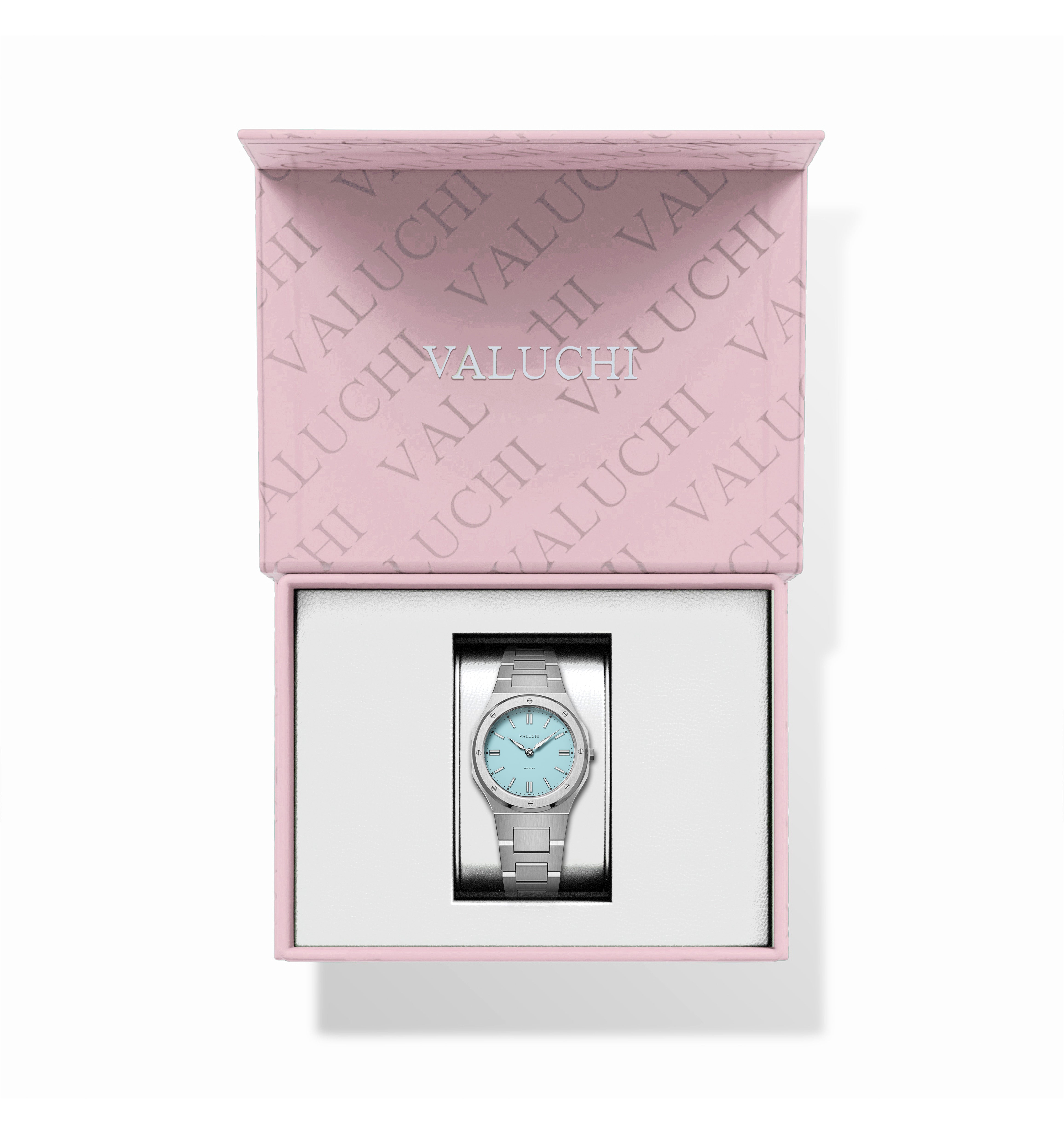 Elegance meets modern design with the Women Silver Tiffany - VALUCHI. This stunning timepiece features a mesmerizing Tiffany blue dial, set against a sleek, shiny silver case, creating an eye-catching and refined look. The soft blue tone contrasts beautifully with the silver accents, offering a sophisticated touch that enhances both formal and casual outfits. With its 31mm dial size, this watch offers the perfect balance of style and practicality, making it a versatile must-have for any collection. As one of our best-sellers, it’s a timeless piece that combines luxury with everyday wearability.